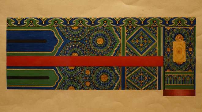 海墁彩画区别于海墁式苏画,是通体满绘单一纹饰于建筑构件的彩画形式,约产生于清代早中期,常用于皇宫园囿、重要王公大臣的府邸花园,是官式彩画中的小品种。