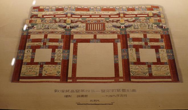 敦煌莫高窟保存有自十六国时期至元代以来的735座石窟、45000平方米壁画和2400余身彩塑,是中国早期彩画装饰图案的艺术宝库。敦煌彩画的风格从大体上可分为早、中、晚三个时期,早期粗犷潇酒,中期富丽高华,晚期繁丽清雅。其纹饰造型、工艺技法与色彩规律深刻影响了后世的官式彩画。
