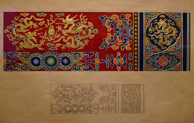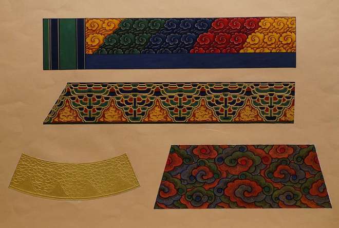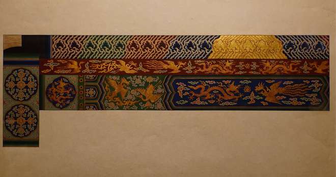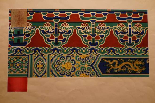 中国古建筑彩画依靠历代工匠的口传心授,得以延续至今。展览还首次展出了中国官式建筑彩画泰斗王仲杰先生(1933~2023年)的彩画研究及其贡献,王仲杰先生是我国古建筑彩画保护研究事业的开拓者,从事官式彩画研究与保护七十余年,主持及指导数十项故宫及全国各地的彩画修缮工程,在彩画工程实践与理论研究方面做出了开创性贡献。